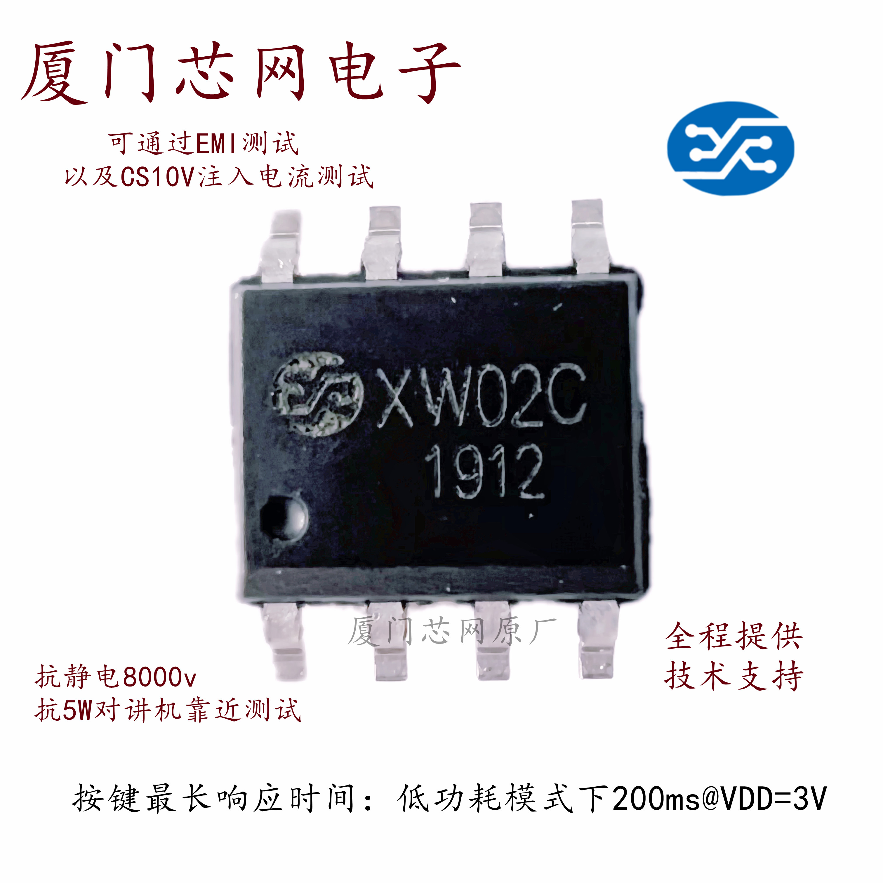 觸摸芯片XW02E 易過輻射測試 滿足動態(tài)cs10V輸出 長按可達30分鐘